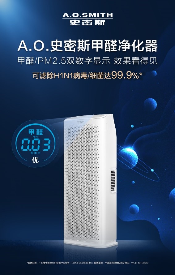 在此次活动的启动仪式上,拥有146年历史的A.O.史密斯还同步首发新款空气净化器 -- SC7。该产品兼顾了除甲醛和除流感病毒两大功能。首先是实际家居环境下深度除甲醛能力,A.O.史密斯自主研发出除甲醛配方,能在实际家居环境下持久除甲醛至0.03mg/立方米,搭配专利甲醛精确数显技术,净化效果一目了然,安全又可靠。另外,这款空气净化器还拥有高标准的H13等级高效HEPA滤芯,能有效滤除H1N1流感病毒达99.99%,HEPA滤网上带有抗菌涂层,可以有效抑制细菌的繁殖滋生,除菌率达99.9%。