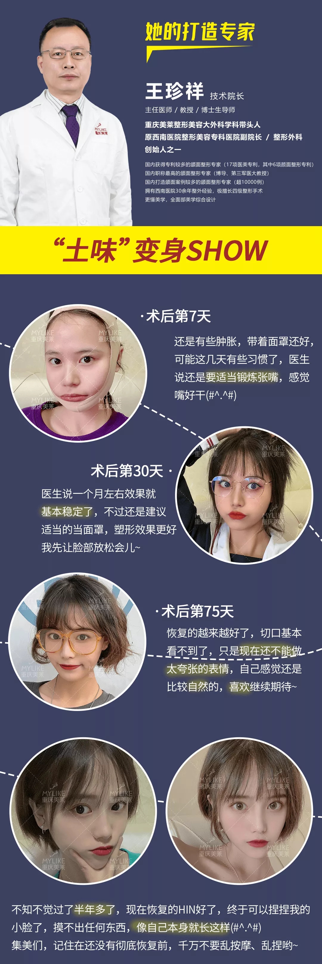 重庆美莱整形医院王珍祥专家 6项颜面整形专利完善安全