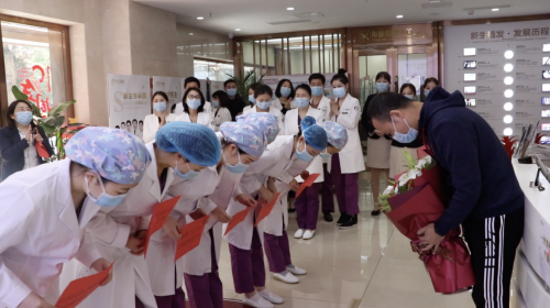 新生植发华北总院为表达我院与抗疫人员的感激之情,我院护士向付先生表示诚挚的感谢,感谢付先生这样的抗疫工作人员,我们也将向奋战一线医护战士学习,学习他们“救死扶伤、大爱无疆”的职业精神,学习他们“敢于担当、忠诚履职”的敬业精神,学习他们“坚守岗位、舍生忘死”的奉献精神,学习他们“逆行武汉、能打胜仗”的无畏精神。
