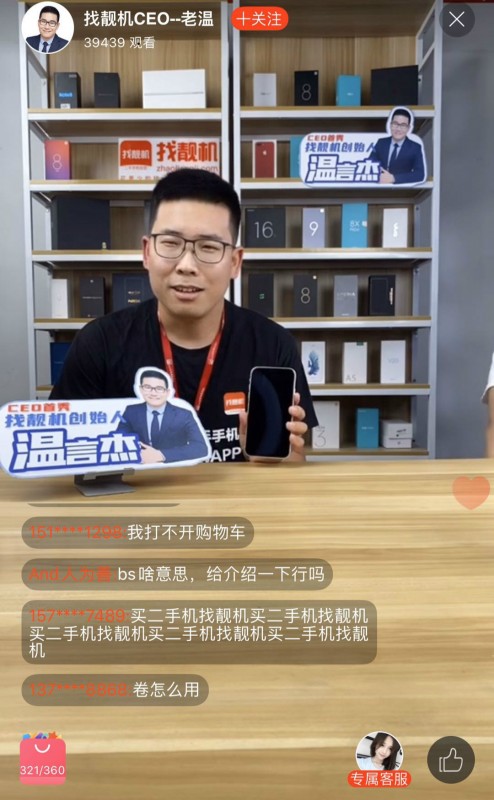 4月25日晚,全国领先的二手3C交易平台找靓机开启了首次CEO直播,找靓机CEO温言杰亲自下场做起了带货主播。