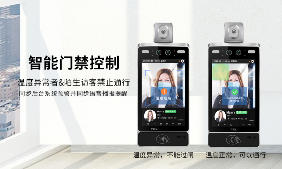 为支持企业、商家安全有序复工,TCL智显推出了AI人脸测温识别系统,推出该集人脸识别、红外测温、门禁联动等功能于一体的AI测温识别系统,打造出入管理和安全防范的一体化解决方案。