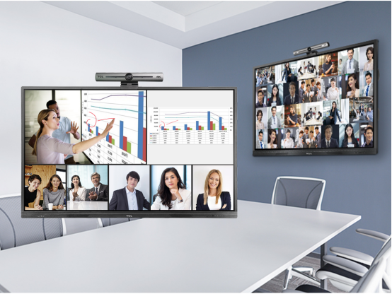 双屏联动,沉浸体验,畅享远程视频会议。TCL双拼联动场景方案,将其中一台会议平板作为主屏,显示共享的会议资料,批注信息等;另一台会议平板作为副屏,展示远程与会者的视频画面,让参会者有沉浸式体验,可以大大提升会议效率,而不像普通的单屏方案在共享资料的时候,资料界面太小或者看不到参会者视频。