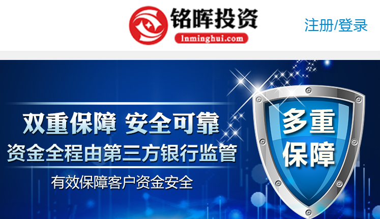 铭晖投资,是一个专注于投资行业的互联网金融服务平台,用心为每一位有投资需求的个人,提供资金安全,好收益,有保障的金融在线理财服务。