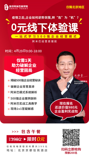限时课程0元体验!仅需399元(场地 午餐 资料 茶歇 )由旌华咨询副董事长冯梓晋老师亲身授课。原海尔集团高管,近20年培训咨询经验。绝对让你收获满满。时间:2020年4月29日(周三)