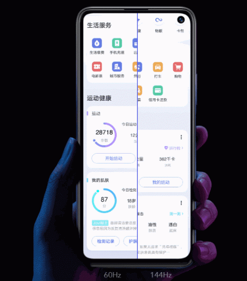 除了触控体验出色外,iQOO Neo3在“视”、“听”方面也是带来了非常大的惊喜。先来说说“视”,iQOO Neo3正面搭载了一块6.57英寸的极点全面屏,不仅可以带来更为完整的视觉效果,最重要的是这块屏幕支持最高144Hz屏幕刷新率。这是什么概念呢?可以说拥有144Hz屏幕刷新率的手机,每秒可显示144帧画面,是传统60Hz屏幕的2.4倍。从下面的图中就可以看出,144Hz刷新率的屏幕明显要比60Hz屏幕的显示效果更加流畅,视觉体验非常出色。