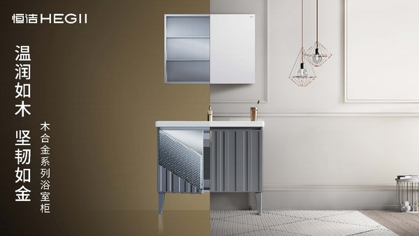 而后疫情时代,浴室柜不止要有颜,还要有料。能够有效防潮防霉的全新材质才是消费者更为省心之选。恒洁木合金浴室柜采用创新性“木合金”材料,利用加厚的航空铝合金面板和高强度铝蜂窝复合材料的填充,能够防止柜体受潮发霉而开裂,更增加了柜体的稳固性。另外柜体通过表面覆膜,带来多样时尚膜色选择,兼顾颜值与温润触感,日常的养护和使用也更加安心。