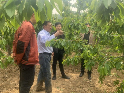 考察团首站来到故县镇西庄村樱桃基地和葡萄基地参观学习。据了解,西庄村是以葡萄种植为主,樱桃和其他农产品辅助的多元化农业示范村,考察团通过了解规划布局、发展情况,学习其先进的农业经营和管理经验,推动村民经济发展。