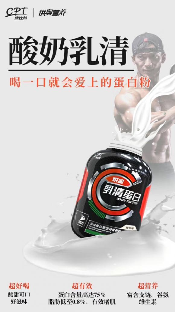 训练后补充乳清蛋白,能够补充肌肉增长所需要的充足蛋白质,推荐康比特炽金酸奶乳清,喝一口就会爱上的乳清蛋白粉,口感酸甜可口,奶香浓郁!蛋白质含量高达75%,脂肪低至0.8%,可以达到有效增肌!