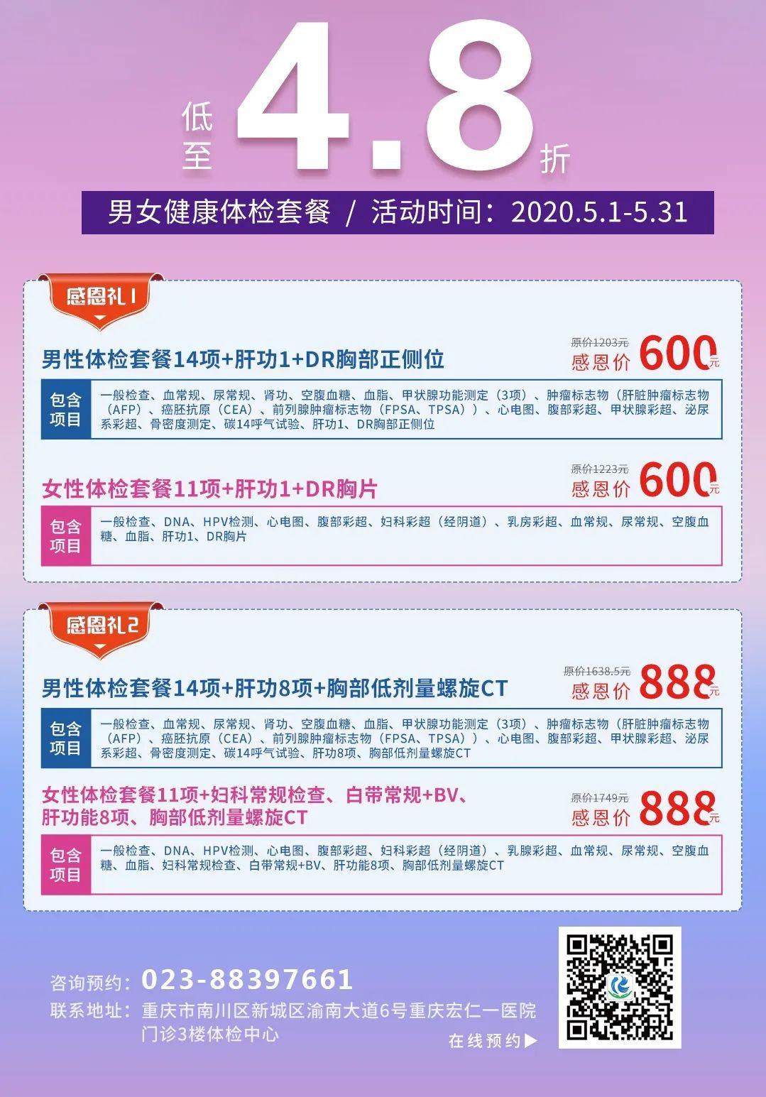 3.本活动体检套餐仅限重庆宏仁一医院体检中心使用。