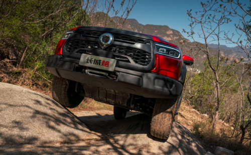 这次试驾地点在北京越野胜地酷野谷,当我与长城炮越野皮卡会合,看到实车时,发现其比网上的图片更有气势,鹰眼造型的LED大灯,前后铁杠,铆钉固定的黑色轮眉,以及流畅的肌肉线条,让长城炮越野皮卡气势非凡。我一米八七的大个,在它面前,难得体会了一把娇小的感觉!