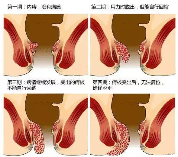 佛山肛泰医院是正规医院吗?患者会给出公正客观的评价,因为他们是亲眼所见,不是道听途说,也不是凭空编制的。据了解,罗阿姨患有痔疮已经超过了十年,开始她自己买痔疮膏、痔疮栓、民间中药秘方等等治疗,不过效果并不明显。之后她去了不少医院治疗,虽然用了不少治疗方法,但是病情总是有反复。由于长期没有治愈,罗阿姨的病情越来越严重了,从开始的无痛便血,慢慢出现了肿物脱出、肛门坠胀、瘙痒等等情况,来这里就诊前,罗阿姨肛门脱出的肿物已经很大,无法自动缩回,需要自己用手推回,非常难受,另外还出现大便喷血等等严重情况(下图是痔疮的分期)。