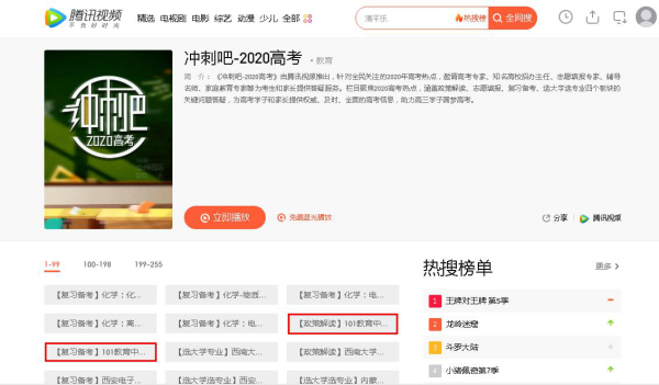 不仅有名师解疑答惑,101教育还为《冲刺吧-2020高考》精选了一批复习备考精品名师课,助力高三考生平衡心态,科学规划,高效复习,突破瓶颈。