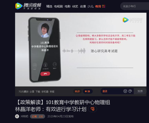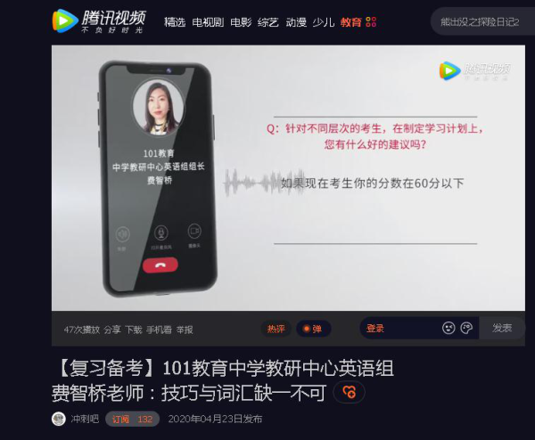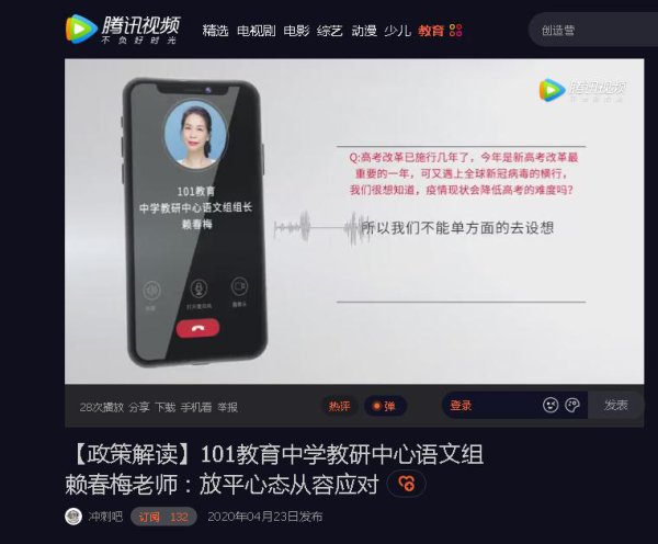 2020受疫情影响高考延期,复习备考就更具挑战性。腾讯视频特别推出《冲刺吧-2020高考》栏目,针对全民关注的2020年高考热点,邀请高考专家、知名高校招办主任、志愿填报专家、辅导名师、家庭教育专家等为考生和家长提供答疑服务。101教育作为一家资深教在线教育企业,应邀参与《冲刺吧-2020高考》栏目内容录制。共推出五位名师,围绕政策解读、志愿填报、复习备考、选大学选专业四个板块的关键问题进行答疑,为高考学子和家长提供权威、及时、全面的高考信息,助力高三学子圆梦高考。