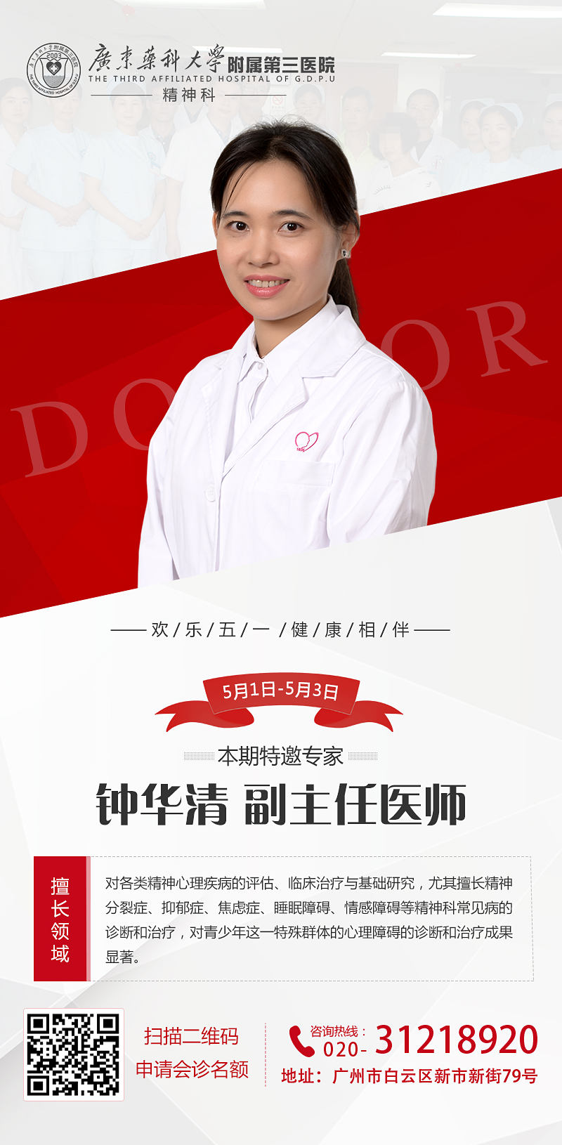 为了让更多精神疾病患者共享优质医疗资源,我院联合京粤精神科知名专家定期莅临我院开展联合会诊。本期会诊时间为5月1日-5月3日,特邀广州精神科名医钟华清主任莅临我院开展为期3天的专家联合会诊。帮助广大患者解决“看病难、挂号难、看专家难”问题,切实帮助省内外疑难精神疾病患者,重返正常生活。