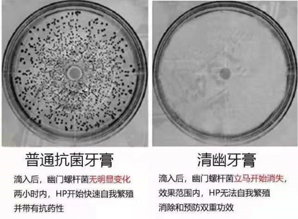 专家强调,除却胃部根治,口腔幽门螺杆菌同样不可忽视,它是幽门螺杆菌在人与人之间传播的必要媒介,是胃部幽门螺杆菌的重要来源,想要降低整体感染率,必须从清除口腔幽门螺杆菌开始。在口腔中,幽门螺杆菌主要藏匿于牙菌斑当中,抗生素难以作用,而一般的牙膏虽能清洁口腔,但对幽门螺杆菌却无可奈何,所以,一款专门针对口腔幽门螺杆菌的清幽牙膏必不可少。