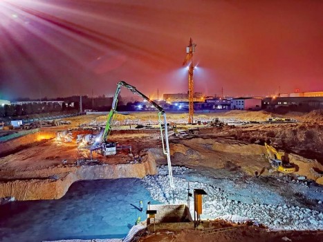 图为公司新生产基地项目挑灯夜“建”抢进度中。该项目建成后预计可实现颗粒剂11700吨/年、胶囊剂3.88亿粒/年、片剂28亿片/年、糖浆剂288万瓶/年的生产规模,为加快来宾市工业园区延长生物医药产业链赋能助力。