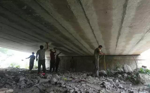 2、表面已碳化的旧混凝土表面,直接对混凝土表面进行打磨直至露出混凝土新面,用压缩空气除去粉尘或者用清水冲洗干净,待完全干燥后使用脱脂棉沾着丙酮擦拭表面即可进行下步施工。