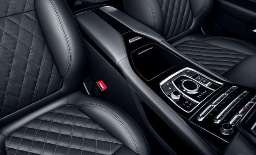 作为一款大型SUV,旷世SUV的内饰设计走的是高端商务风格,无论是布局、设计还是用料都是走的高端奢华路线。旷世SUV的车内使用了大量高级皮革材料,覆盖了包括座椅、中控台、门板、仪表台等部位,并且提供了三种颜色,包括黑色、黑棕色和黑红色。前后排座椅更是增加了额外的菱形格纹装饰,视觉质感十足。此外,旷世SUV还使用了大量珠光镀铬材质的装饰条、车内氛围灯等有助于提升整体氛围的配置,让整车更显高档。