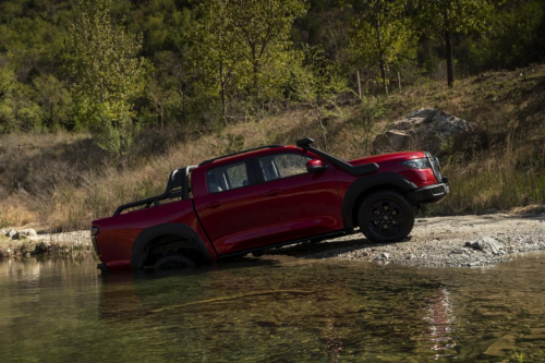 最后的项目是大涉水,该地段积水深度将近500mm,即使是底盘高的SUV也不敢轻易尝试,但长城炮越野皮卡拥有比肩奔驰GL级的700mm超高涉水性能,仿佛游走的“舰艇”般直接划过了水面。另外,安装在车头右侧的加长涉水喉,抬高了进气口位置,即使水花飞溅,也没有对发动机造成任何影响。
