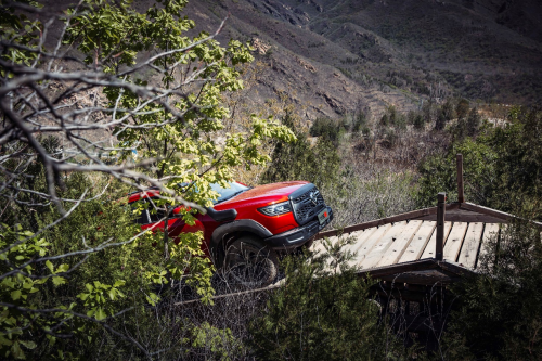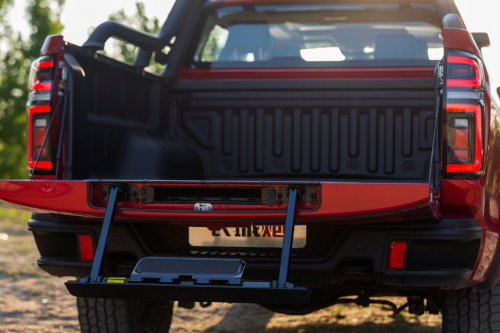 接着我便被其1520mm x 1520mm x 538mm同级最深的大货箱给震住了,这样的尺寸意味着我出行时可以携带更多装备,即使拖载一辆山地摩托也不成问题。另外,在车尾部分,长城炮越野皮卡还隐藏了小惊喜,同级唯一的阻尼+助力后尾门以及隐藏式踏板设计,不仅上下货箱非常方便,开关尾门也能省下不少力气。