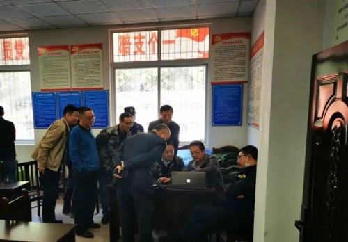 白旭阳(右二)向领导汇报山火分析报告情况