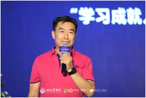 总裁83期班长、广州市裕熙隆进出口贸易有限公司董事长曲长春同学作为学长代表与100期新生曲同学父亲的双重身份来到活动现场并发表寄语:无论你是来自何方、身价多高,来到博研的课堂上,都要踏踏实实,用空杯的心态来学习。