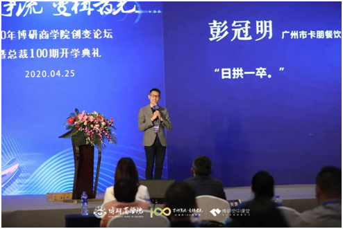 第二位新生代表是来自广州市卡朋餐饮管理有限公司CEO的彭冠明同学,他表示选择博研的原因是课程非常落地,对于企业的日常经营具有非常大的实战意义。