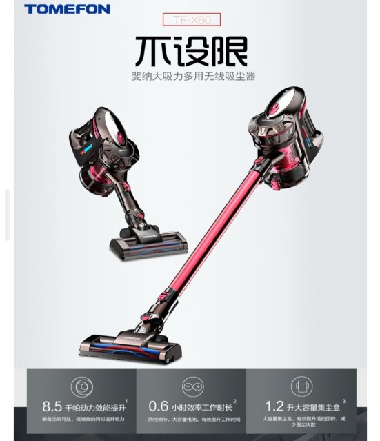 与业内同类产品相比,新升级后的斐纳TOMEFON无线吸尘器更具创新性,在性能、技术、品质等方面均大幅度领先于同行,其注重每一个细节的设置,是性价比非常高的无线吸尘器产品,所以说,选择斐纳TOMEFON无线吸尘器绝对不会错!