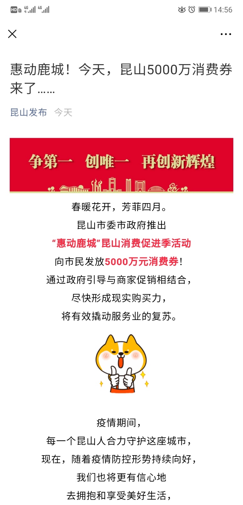 根据国家统计局初步核算,一季度国内生产总值按可比价格计算,同比下降6.8%……新冠肺炎疫情虽已在国内得到基本控制,但从某种意义上,疫情的确拖了2020年经济增长全局的“后腿”。这让刺激消费、复苏居民的“消费意识和心智”成为各级政府的当务之急。而“消费券”作为当前提振经济的重要举措,也开始在全国大范围“落地”。4月24日上午,昆山市政府也宣布“向本地居民派发5000万元消费券”。