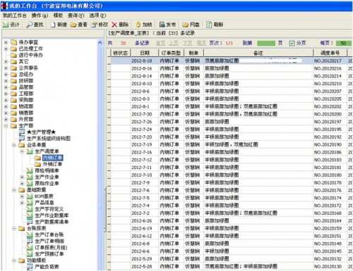 生产系统集销售,生产,物流于一体,通过工作流规范各环节的数据流动。