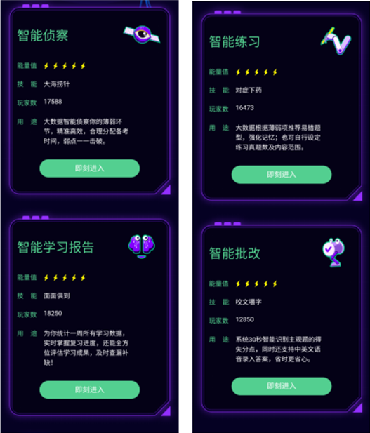 致力于实现智能化与产品功能点的契合,通过开发智能引擎,大数据挖掘真题数据,抓取个人学习情况,服务于每一个学习环节,满足备考学习需求。