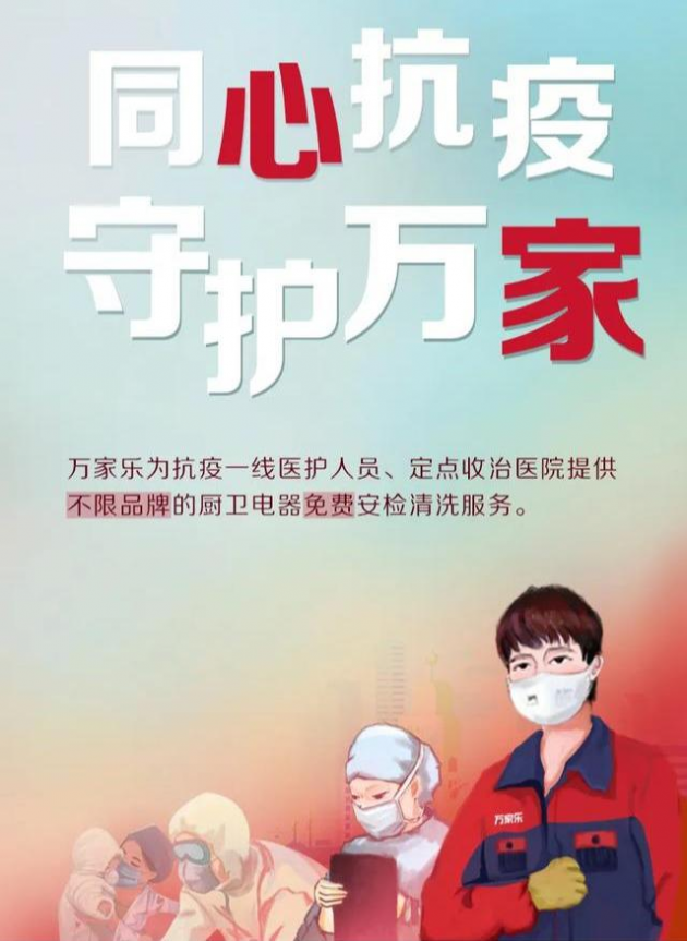 疫情防控最严格的医院,很多企业唯恐避之不及,但万家乐逆势而行,发起“同心抗疫,守护万家”公益服务行动。不仅优先安排一线医院的安装、维修需求,而且免费对一线医护人员、定点收治医院的厨卫电器进行免费保养、清洗,而且不限品牌。疫情期间,万家乐通过无微不至、点滴入心的关怀进入了行业服务的新境界。