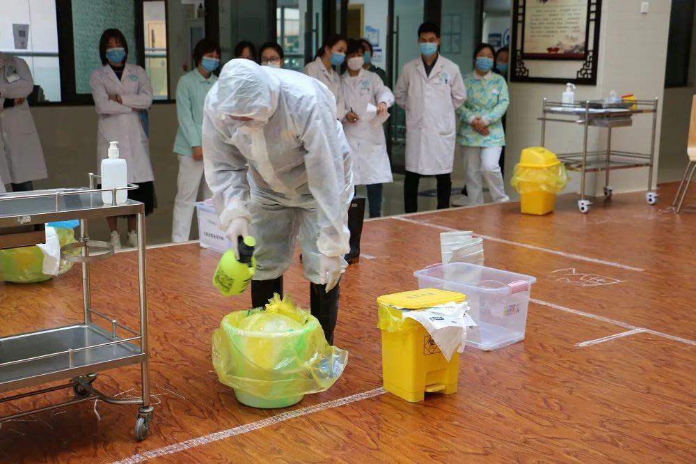 为积极应对新冠肺炎疫情,依法、科学、规范、有效地开展新冠肺炎预防和救治工作,强化南川宏仁医院应急处置意识,检验医院对新冠肺炎的接诊、隔离、疫情报告、转运、个人防护及消杀等能力,做到早发现、早报告、早隔离、早诊断、早治疗,保障人民群众的生命安全与身体健康。4月27日下午,重庆南川宏仁一医院针对预检分诊处发现一名发热症状患者,开展了新冠肺炎疫情应急处置实战模拟演练。