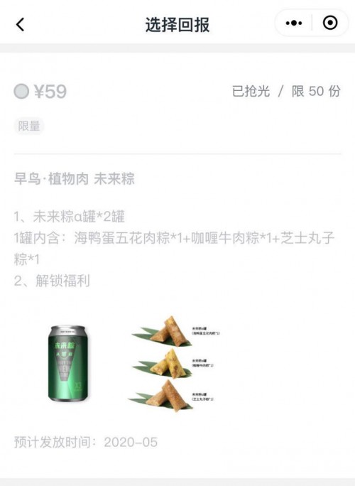 同时,星期零目前的产品生产成本介于大宗采购的猪肉和牛肉之间,此次的植物肉粽子在定价上也有十足优势。3只混合口味植物肉粽的众筹价格为59元/2罐,每一只的均价不到10元,上线不到一小时即抢购一空;而在电商平台上,诸老大酱香黑猪鲜肉粽的单只价格本来就需要8元。消费者可以用与真肉粽类似的价格,体验到更加健康、美味、有趣的植物肉粽子。