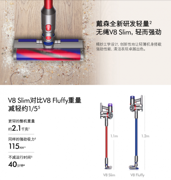 第二名,戴森dyson V8 slim手持无线吸尘器。