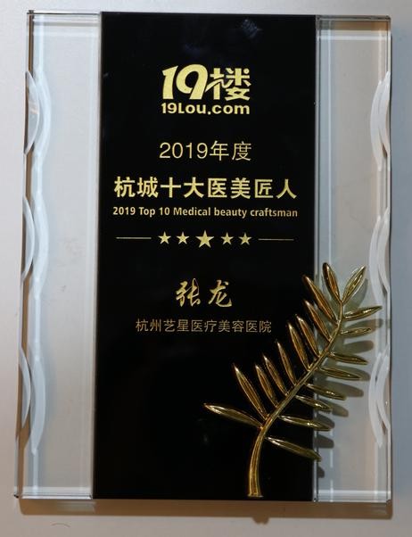 张龙(集团片区院长),获得由19楼颁发的2019年度杭城十大医美匠人