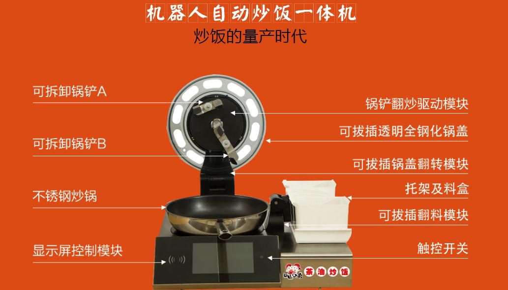 自由兄弟加盟,采用的是解放双手的机器人自动炒饭一体机。