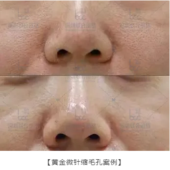 先用微针打开皮肤通道,射频能量通过微针传导,微针的机械刺激+射频能量,刺激皮下胶原再生,改善皮肤的新陈代谢。通过微针尖端发射的射频能量破坏分泌异常的皮脂腺,抑制炎性反应,从内而外的改善肤质,达到收缩毛孔的作用。很多人童鞋会说光子嫩肤也可以缩毛孔,但它跟黄金微针比弱爆了好吗!
