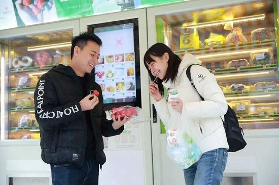 “这款八门称重无人售货柜是市场上比较热门,也是销量最多的一种售货柜,自带触摸屏、称重系统、温度调节系统、支付系统,消费者在购买商品时也是非常方便。它最炫酷的地方是有智能精准扫描定位X-Y轴,目前来说是市面上最领先的技术”。在摆满了各种各样的果蔬水果售货柜旁,广州臻善易购智能设备有限公司的销售经理正在向客户杨先生介绍公司这款最新型的产品。