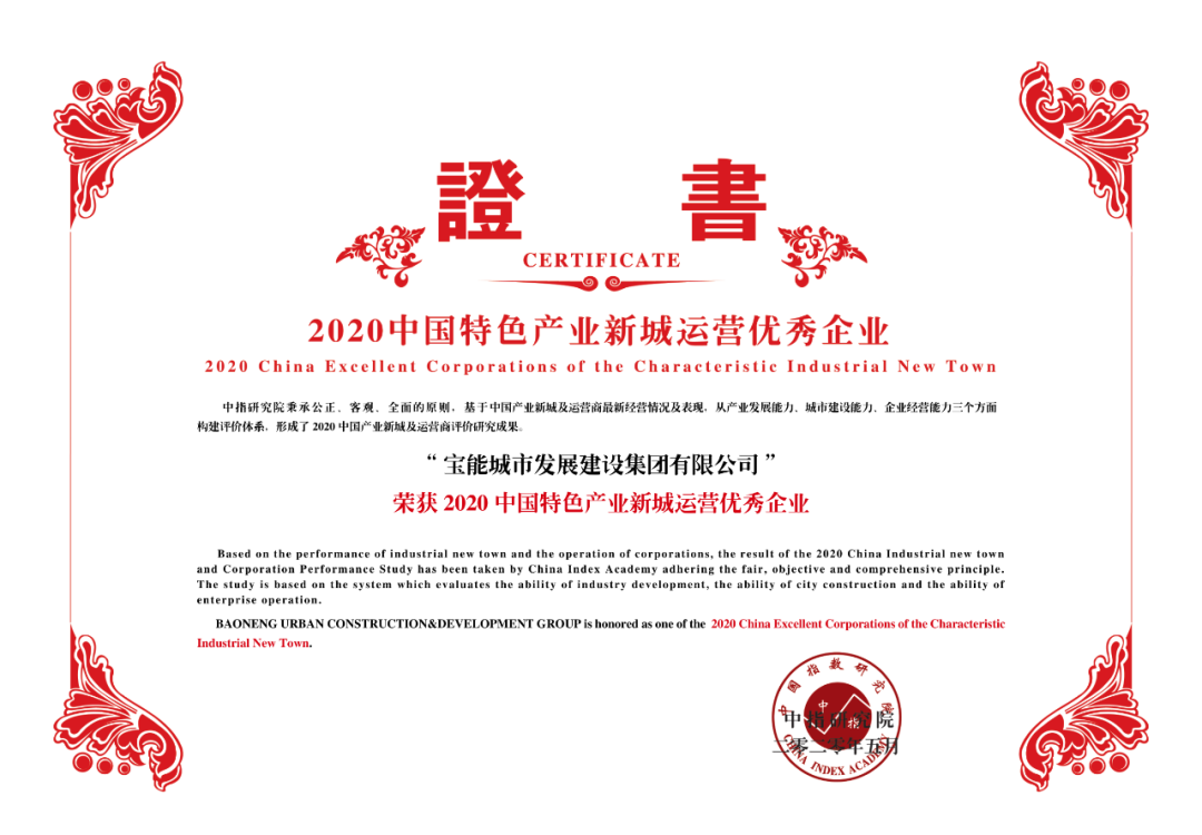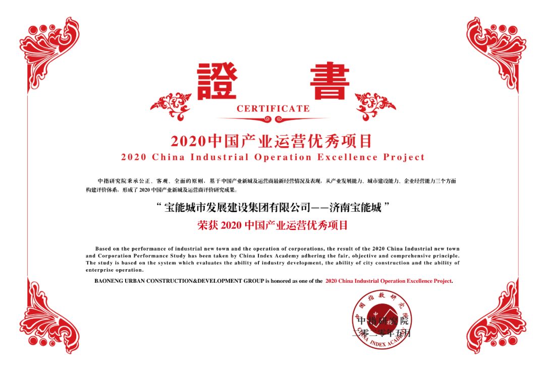 5月13日,宝能城发凭借独特出色的产城融合运营模式,荣获由中指研究院主办的“2020中国产业新城运营商研究成果发布会暨第五届产城融合发展高峰论坛”颁发的2020中国特色产业新城运营优秀企业奖项,同时,济南宝能城项目也荣获2020中国产业运营优秀项目奖项。