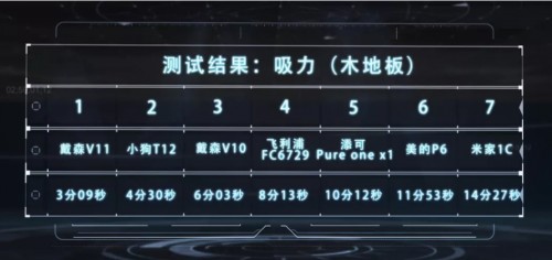 最终,这一环节的排名顺序是:小狗T12、添可PUREONEX1、美的P6、米家1C、戴森 V11、戴森V10、飞利浦FC6729。