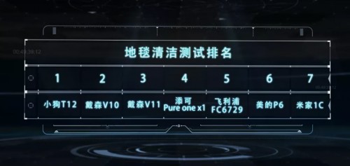 在这一方面,小狗T12的效果就比较明显,在地毯上能够将毛发、纸屑轻松吸附。这得得益于小狗T12设计独特的双滚电动地刷,它地毯上的清洁效果要远胜于其他六款。来看下地毯清洁测试排名,小狗T12排名第一、戴森V10排名第二。