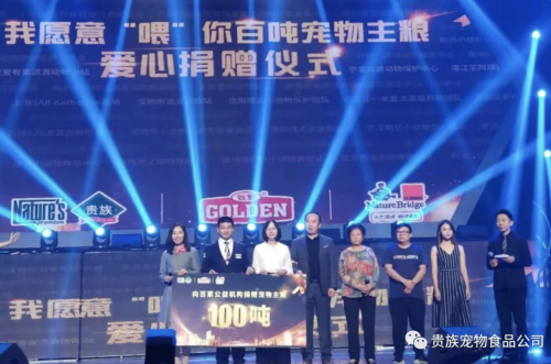 秉承着“为宠物创造无限美好生活”的精神,贵族从未停下自己的脚步,一直以来都致力于公益事业。2019年9月20日,为了让流浪动物们在逐渐变冷的秋日里吃顿饱饭,贵族在爱宠狂欢夜上捐赠了40万元的宠粮,并与瑞鹏基金会及爱心品牌商共同发起【我愿意“喂”你百吨粮】活动,为全国范围内100家流浪动物保护组织,捐赠100吨主粮!为流浪动物们贡献出绵薄之力,并呼吁更多的爱心人士加入流浪动物救助行动,给它们一份生存的希望!