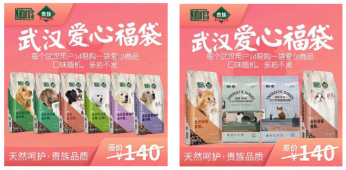 在了解到武汉犬猫们的痛心情况后,贵族&爱哒哒立即采取行动,紧急协调全国各仓狗粮、猫粮、猫砂等物资,并于2月28日开始,携手新瑞鹏宠物医疗集团发起“福袋行动”,以线上公益捐赠的形式,向武汉地区的广大养宠朋友以及行业动物救助等公益组织提供救援,共同为武汉地区的毛孩子开启生命通道!