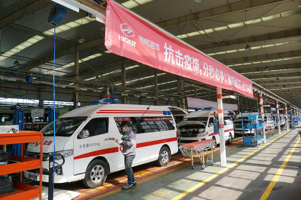 疫情面前,苏州金龙仅用一周时间完成国家工信部下达的任务,千方百计赶制负压救护车支援武汉。勇于担当的海格客车也用中国速度为武汉加油鼓劲。