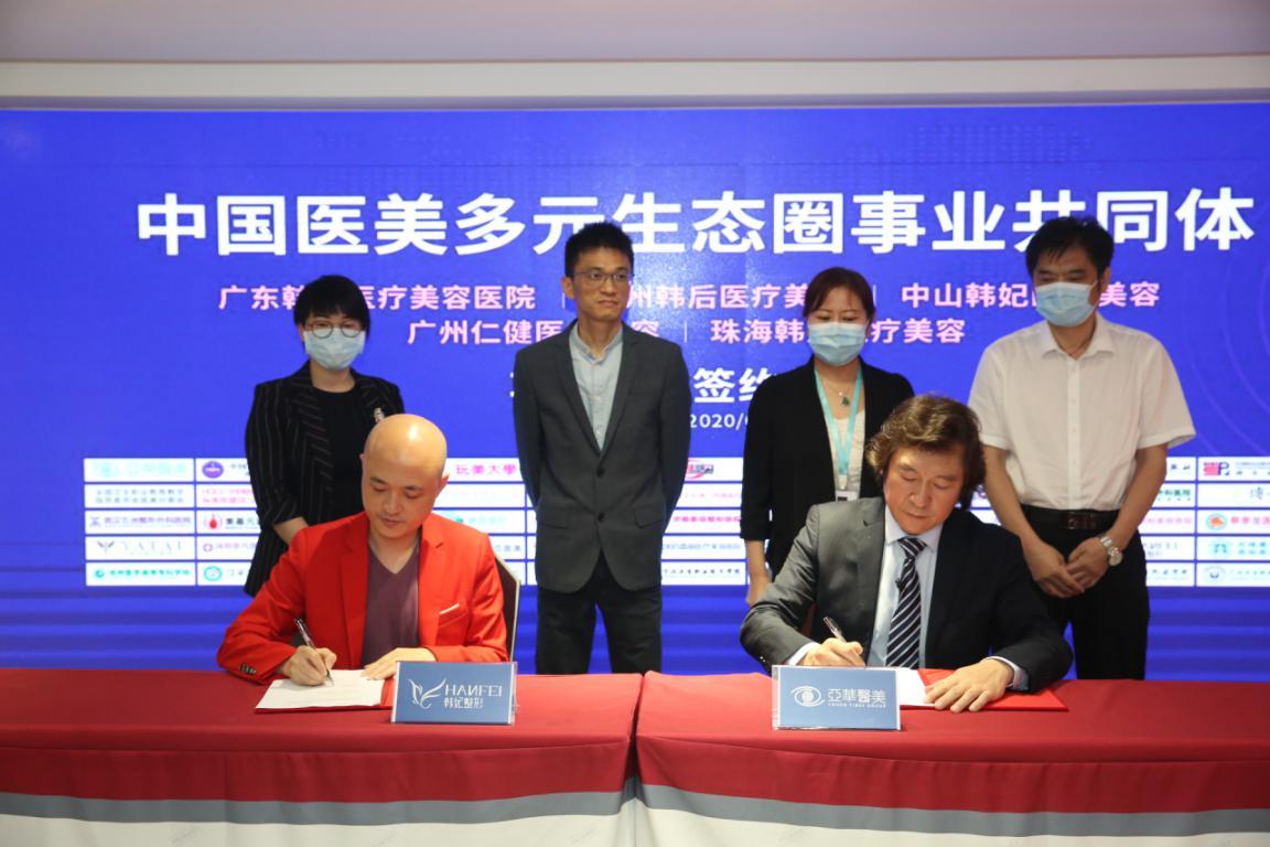 2020年5月13日上午,广东韩妃携品牌连锁医院在广州举行了中国医美多元生态圈事业共同体项目签约仪式暨全国医美教育资源共享联盟战略伙伴加盟仪式,正式成为中国医美多元生态圈事业共同体和全国医美教育资源共享联盟成员单位。