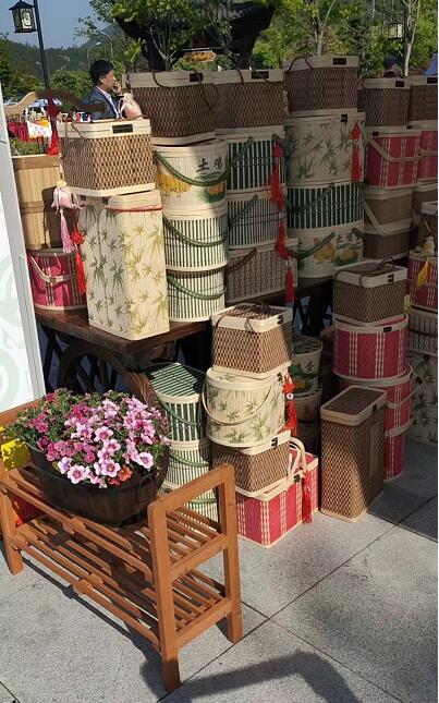 作为“中国第一竹乡”这里的传统竹编艺术有着悠久的历史,竹编工艺分为细丝工艺和粗丝竹编工艺。肖开琴,从小耳濡目染老工匠的手艺,通过与不同技艺师傅的交流发现竹子编织的蓝子若用于各种食材的包装更加环保,2009年创办浙江安吉杭垓山旮旯竹制品公司,依靠得天独厚的竹林资源,巧妙地运用从生活中日积月累得来的灵感进行竹蓝编织的制作。