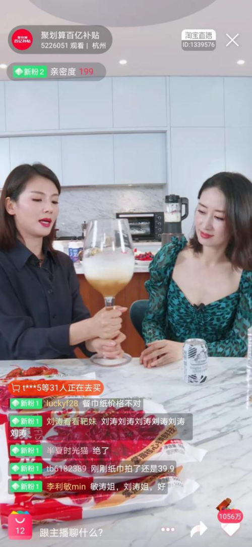 虽然是直播首秀,但涛姐做足了准备,在直播间里,化身“刘一刀”为大家砍价、介绍好物。 知名女星刘敏涛也现身直播间,刘涛开玩笑表示”刘涛过敏,就成了刘敏涛”,二人之间的互动非常欢乐。