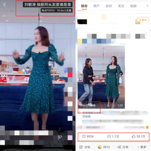 两人跳舞的视频迅速在网络上传播,瞬时登上微博、抖音等平台热搜榜单。