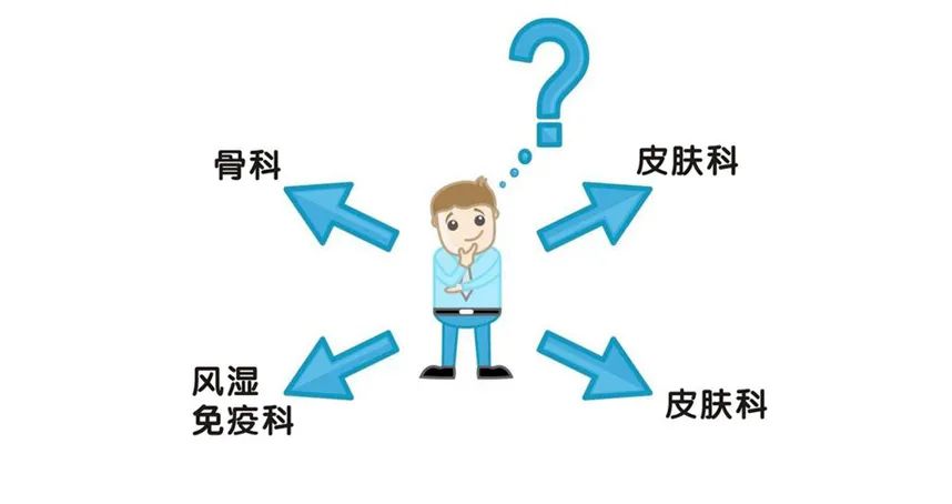 通常医生会建议,关节出现红肿热痛,就应该去看风湿免疫科医生。但其实病友描述病情时,通常只会说“关节好”、“关节不好”、“关节痛”这样的主观和笼统的形容词。而且,大部分风湿免疫性疾病的病人,对于自己所患的病情和疾病类型并不熟悉,有不少病人会跑错地方,比如去骨科或者内科治疗。而风湿免疫性疾病虽然通常是累及关节,其实在身体其它器官包括眼、耳、口、鼻、五官以及内脏器官都会有影响。